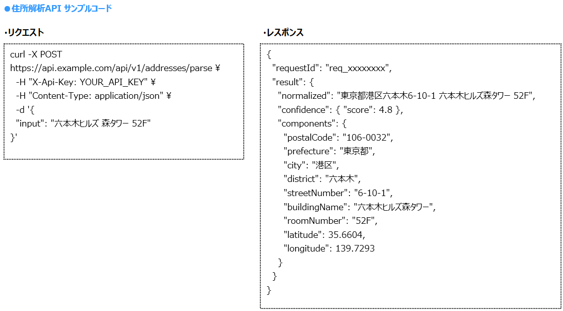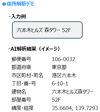 ・入力ゆれ/不足/表記ブレのある住所データを、AIで高精度に構造化データへ変換する「住所解析API(Staddress AI)」との連携支援を提供する